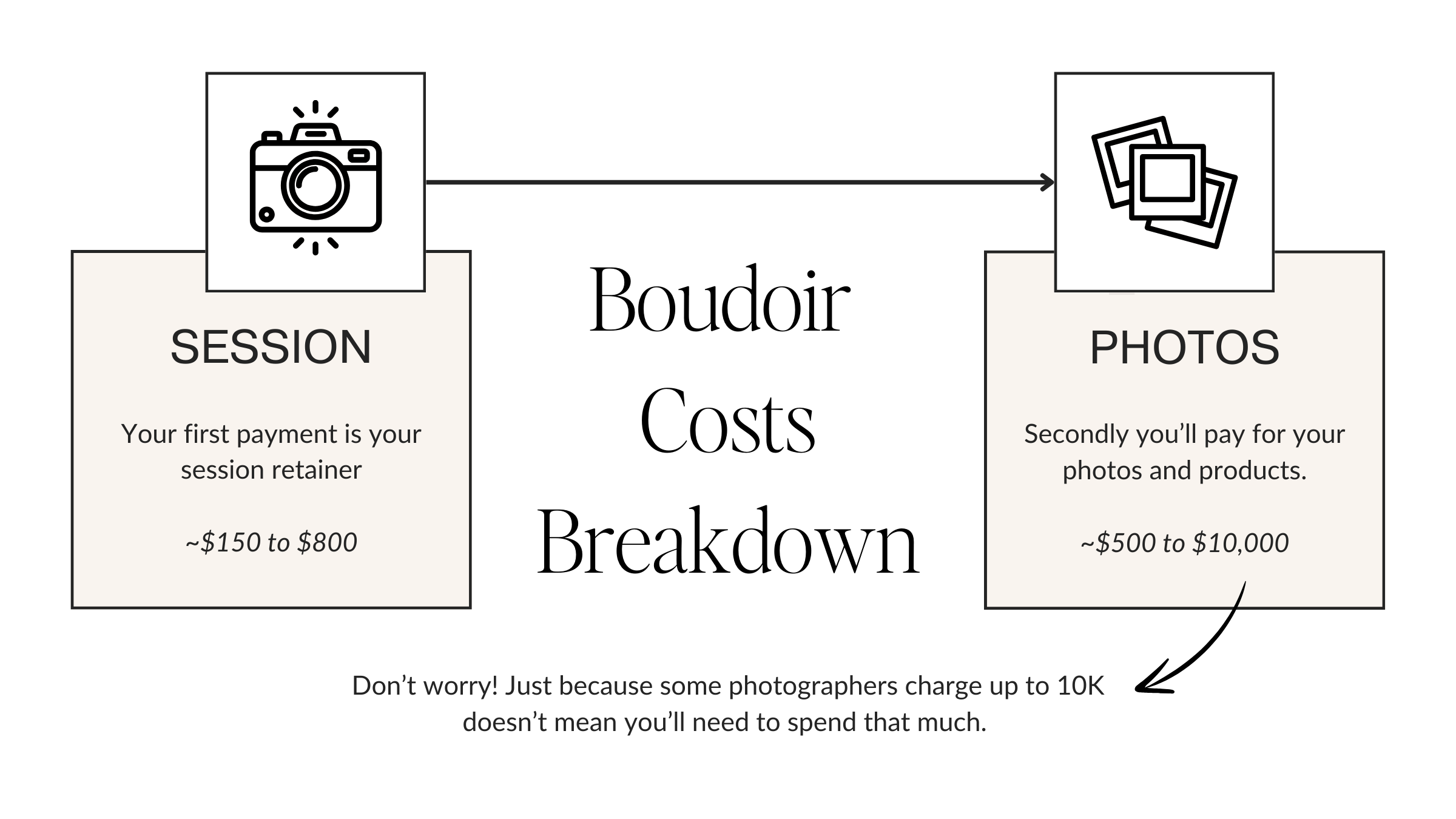 While most people will spend a few thousand dollars on their boudoir photos, how much you choose to spend should depend on your personal budget and needs. A good photographer will guide you through options, be open to your concerns and desires, and offer recommendations on how you can get the most value out of your experience.