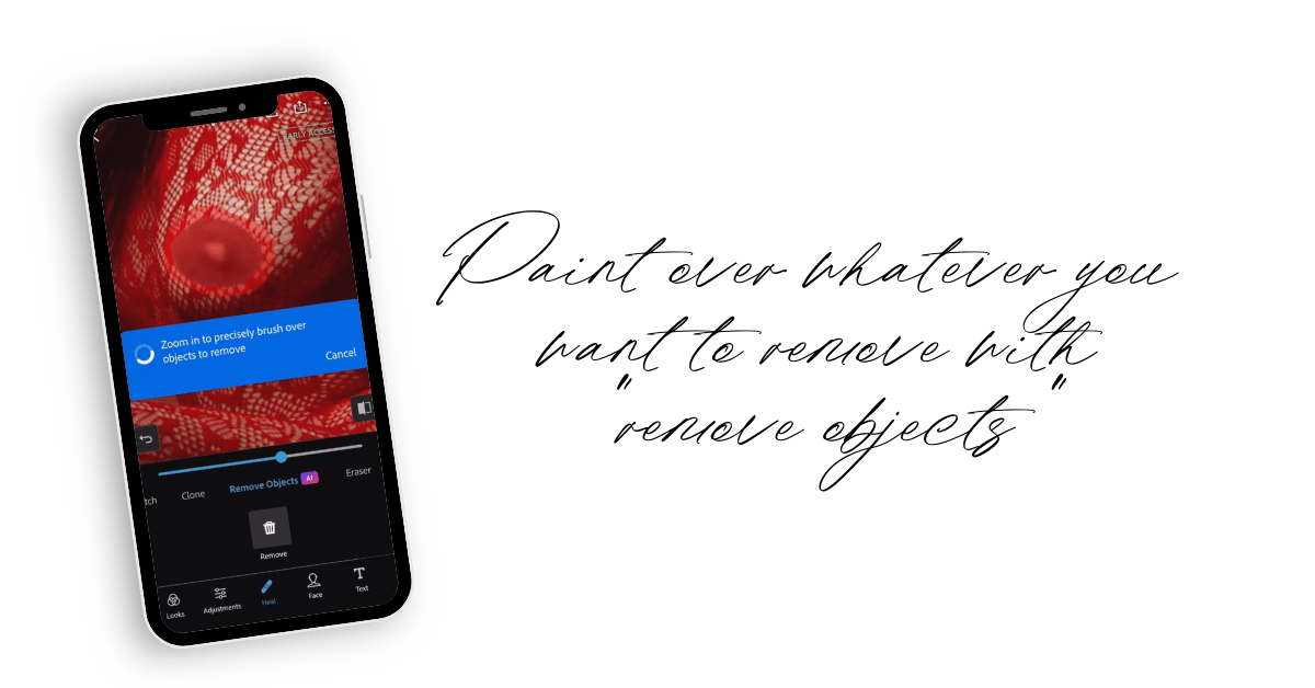 Tap into your inner digital surgeon. Zoom in on the area where your shirt... shifted. Then use the Remove Object tool. It’s powered by AI, so it’s basically magic.